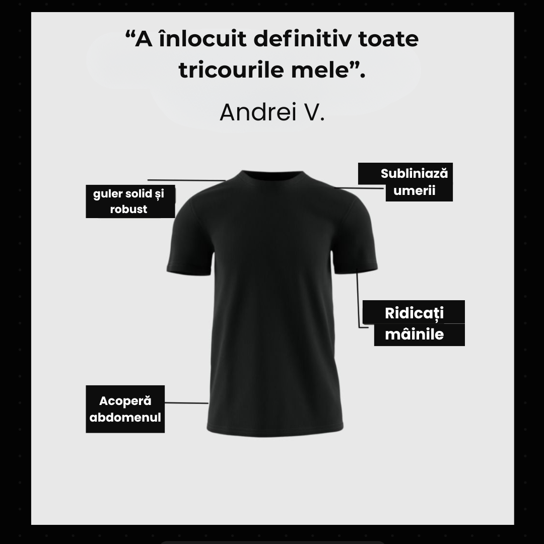 Toate tricourile noastre sunt ajustate și croite pentru a vă pune în valoare silueta, indiferent de forma sau dimensiunea acesteia. Știm care este diferența dintre un tricou corect și un tricou excelent: totul ține de modul în care acesta se mulează pe brațe și umeri.
